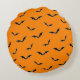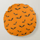 Halloween Orange & Black Bats Flying Pattern Round Cushion
