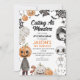 Cute boys Halloween themed birthday party invitation featuring a skeleton, pumpkin head, mommy, bat, a few pumpkins and more. This Halloween birthday invitation is suitable for a Halloween themed birthday party and can be used for any age.