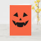 this spooky orange happy Halloween card features a creepy pumpkin face. the inside says happy Halloween with spooky bats flying.
