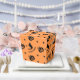 Fill these festive favour boxes with treats and surprises for your Halloween party guests! These charming and spooky boxes feature a playful and eerie pattern of black silhouettes, including grinning jack-o'-lanterns, witches flying on brooms, stars, and crescent moons, all set against a vibrant orange background. The charmingly creepy "BE VERY AFRAID" text adds a perfect touch of Halloween spirit. With their scalloped top edge, these boxes are perfect for holding candy, small toys, or baked goods, making them the ideal party favour for your Halloween bash.