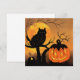 Halloween. Owl in tree with pumpkin. Moon. Card