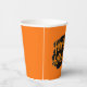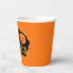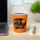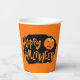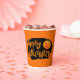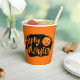 This paper cup is shown in a festive Happy Halloween scary pumpkin print design.