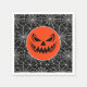 Halloween party paper napkin is shown with a festive spider webs and scary pumpkin face print.