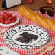This paper plate is shown with a spooky Halloween bats and raven print.