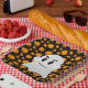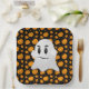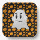Halloween party paper plate shown with a pumpkins and ghost print.