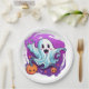 This paper plate is shown in a festive Halloween ghost print design.