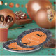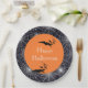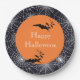 This paper plate is shown in a spooky Halloween spider webs print design.