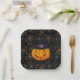 This paper plate is shown in a spooky Halloween spider webs and pumpkin print design.