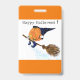 Halloween Party Badge Witch Pumpkin Flying Broom ID Badge