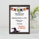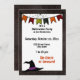 Personalise the front and back of this Halloween party invitation created on a black dotted grunge background, accented with a decorative party banner, cute witch hat and a spider web. Just edit your details in the easy zazzle text editor. Add plates, cups, napkins and more from a large mix and match collection that coordinates with this design.