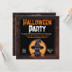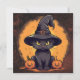 Invitation to a gathering before the trick or treating begins. Great for kids, this invitation is more cute than creepy. A little black kitten that's ready to cast a spell of cuteness on you! Dressed in a big, oversized witch's hat, this feline friend is all set for a bewitching Halloween adventure. With two cheerful jack-o'-lanterns sitting at its feet, and a big, orange moon rising behind, this design captures the enchanting spirit of Halloween.