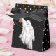 Creative Halloween party favours or treat boxes featuring funny ghost holding a trick-or-treat pumpkin on a polka-dot background.