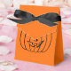 Party favour box shown in orange with a Halloween pumpkin print with a black accent ribbon. Perfect for Halloween gift giving.