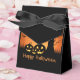 Party favour box shown in black with pumpkins with a black accent ribbon. Perfect for Halloween gift giving. Customise this item or buy as is.