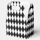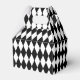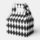 This party favour box is shown in a black and white Harlequin diamond pattern print.
