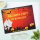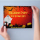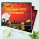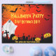 Spooky Halloween party flyer with ghost, jack o lanterns and graveyard