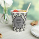 Serve up some witch's brew at your Halloween party with these spooky cups that are ready to be customised with your own message. Your message appears against a grey and black circle set against a pattern of ghosts hanging out in a graveyard. This graveyard is haunted with ghouls, but fear not these sheet style ghosts are unlikely to give you nightmares. They dance among the grey coloured tombstones in this cemetery and are joined by black crows, purple butterflies, green inchworms and spiders and their webs.