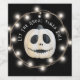 A creepy gothic white pumpkin with sunken black eye sockets and a stitched mouth, with the phrase: "let the ghoul times roll". Black and white and scary! A stand out for your gothic party.