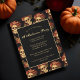 This gothic Halloween invitation features a pattern of creepy skulls floating in a black abyss behind your invite. Each spooky skull is adorned with red roses. Their empty soulless eyes are contrasted sharply against the goth rose crown and bouquets of dead flowers.