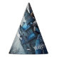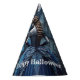 Halloween Party Haunted House Blue Night Scary Party Hat. Unique, beautiful, stylish design. Easy to be personalised. Font style, size and colours can be changed. Matching items are available.