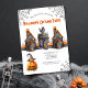 Halloween Party invitation with Haunted houses and pumpkins and spider webs, oh my!