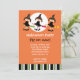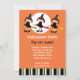 Invite family and friends to your Halloween Party with this festive invitation. This black and orange invitation features a three cute witches on brooms and a full moon. ©BabyStar Designs
