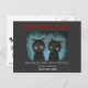 Halloween party invitation featuring cute black cat kittens. Handy and versatile post card form. Original illustration by MiKa Art.
