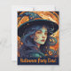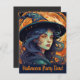 Customisable Halloween Party Invitation Postcard with a Witch Theme – printed double-sided on cardstock with a vintage witch illustration. Ideal for costume or spooky-themed parties.