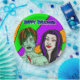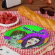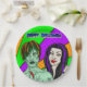 Pop art style vampire and zombie lime green and purple. Halloween party paper plates.