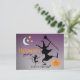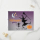 Spookacular Halloween Party invitations featuring a witch and black cat dancing in the moonlight. Printed on postcards to make it super easy and inexpensive to send! You may customise the information on the back or simply write it in later.