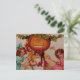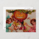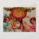 A Halloween party with little girls and a jack-o-lantern pumpkin. Based on a vintage antique pumpkin postcard from the early 1900s. Art illustration graphic design artwork painting print.