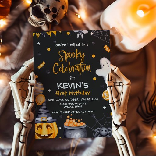 Set the tone for a thrilling celebration with our **Halloween Party Spooky Celebration Birthday Invitation**. Perfect for a Halloween-themed birthday bash, this invitation features spooky elements like ghosts, bats, and pumpkins, creating a fun yet eerie vibe for your event. With its bold design and festive colours, this invite captures the essence of a Halloween party while delivering all the essential details. Whether for kids or adults, this invitation ensures your guests are ready for a hauntingly good time at your spooky celebration.