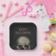 Vintage etching of human skull on black with goth style Typography - black on black theme