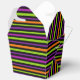 Party favour box is shown with a Halloween multi colour stripes print on all panels.