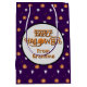 This spooky Halloween gift bag is decorated with funny pumpkins, ghosts, bats and scary eyes on a dark purple background imitating Halloween night.