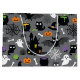 Funny Halloween pattern with bats, cats, spiders, ghosts, pumpkins, haunted house, lollipops.