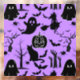 This image is a Halloween-themed collage featuring various spooky elements in black silhouettes against a transparent background. Prominently, there is a ghost with a friendly expression, a witch riding a broomstick, and a carved pumpkin with a jack-o'-lantern face. Surrounding these central figures are several bats in different flying positions, a black cat sitting with its tail curled, and a couple of spiders. There are also eerie, leafless trees and hands reaching up from the ground, adding to the haunted atmosphere. The combination of these elements creates a festive and spooky Halloween scene.