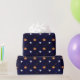 This beautiful Halloween wrapping paper is decorated with funny pumpkins, ghosts, bats and scary eyes on a dark blue background with light glitter.