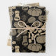 Set of 3 Halloween Wrapping Paper sheets with all things halloween including jack o lantern pumpkins, witch on broomstick, witch's hat and cats, toadstools, spiders and cobwebs. The designs are in natural neutral shades of brown beige tan and cream.