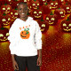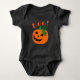 This trendy and sassy orange and black Jack O Lantern baby bodysuit has a happy smile on his face, and Boo! written above. You can change the text on the front and back to a name or message of your choosing. The shirt comes in children and adult sizes and lots of different colours.