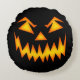 Round throw pillow shown in black with a scary Halloween face. Customise this item or buy as is.