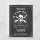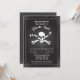 This invitation is ideal to celebrate a Halloween party with a Pirate theme. It features a vintage design with a skull and bones on a black, grey and white colour combination. An ornate frame encloses the card. This is a perfect invitation for an adults costume party. The wording is made in pirate talk. Add your own event details.