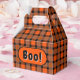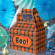 Stylish orange and black Halloween plaid gift box – perfect spooky packaging for party favours, treats, or seasonal gifts.