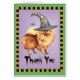 Send thanks for having a howling good Howl-oween party celebrating Halloween with a cute Pomeranian wearing a witch hat decorated with a silly spider.