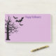 Post note shown in purple with a spooky Halloween bats print.
