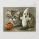 Halloween Postcard Cat Kitten Ghost Pumpkin Art