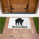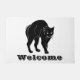 Doormat Welcome Door Mat with customisable text template Welcome typography and printed with Halloween Prowling Black Cat Silhouette Drawing hand drawn graphic artwork drawing design illustration by TheFabricSeal print on demand shop at Zazzle.com #ZazzleMade ©️Original. https://www.zazzle.com/store/thefabricseal