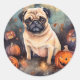 Halloween Pug With Pumpkins Scary Classic Round Sticker