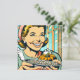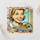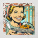 Halloween pumpkin carving party invitations. Cute retro mum holding a tray of pumpkin seeds to invoke a nostalgic feeling of Halloween's past.