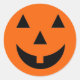Small round shape sticker shown with a graphic print of a Halloween pumpkin face.